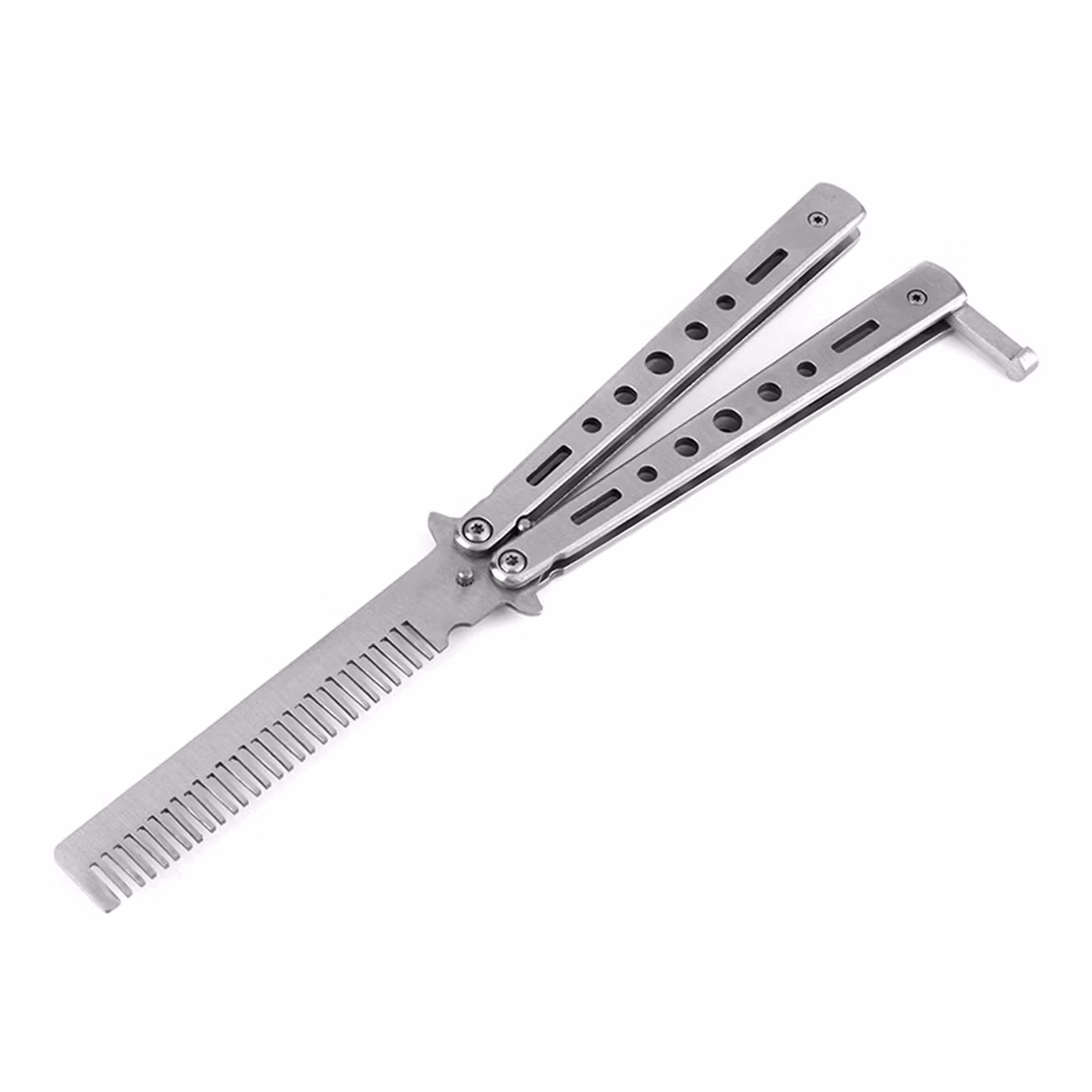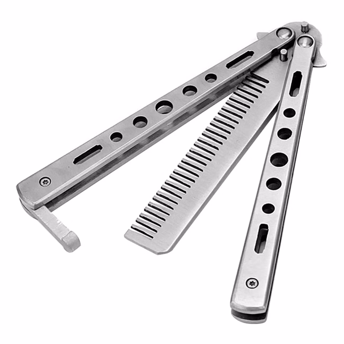 Butterfly Kam är en hoppfällbar kam som du kan bära med dig i fickan. Mäter ca 10 cm ihopfälld och ca 22 cm utfälld. Tillverkad av stål. Säljs styckvis