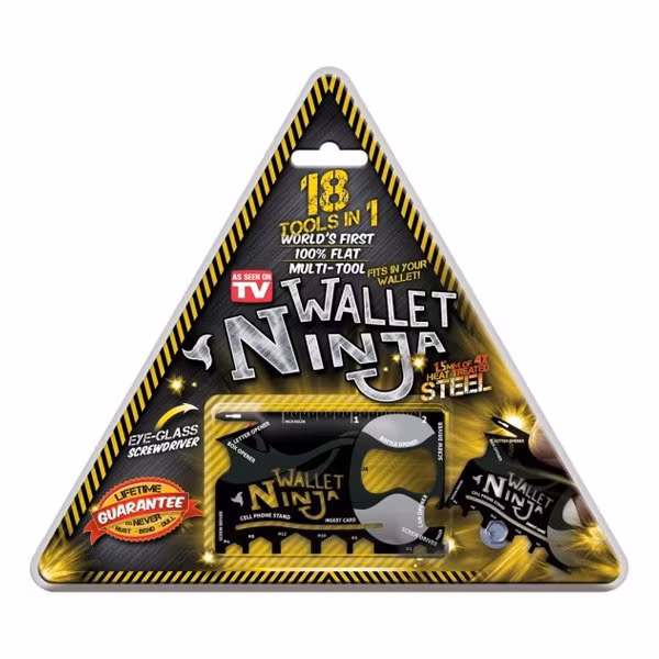 Ninja Wallet är ett fantastiskt multiverktyg som inkluderar alla möjliga verktyg i ett smidigt format som du enkelt kan bära med dig. Äntligen kan du sluta använda naglar och tänder för att fixa det som behöver lagas eller för tt få upp burkar, flaskor och lock. Ninja Wallet gör allt det där och mycket mer.