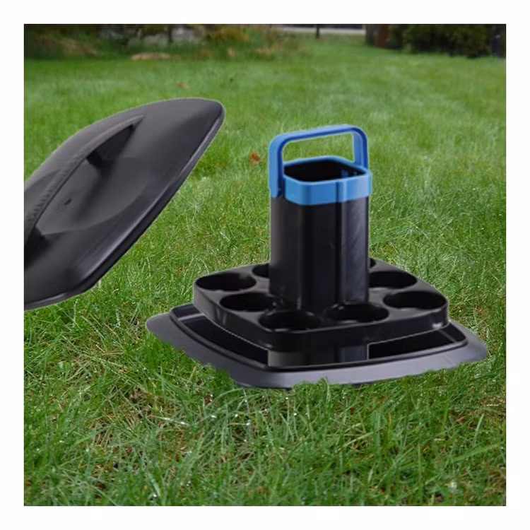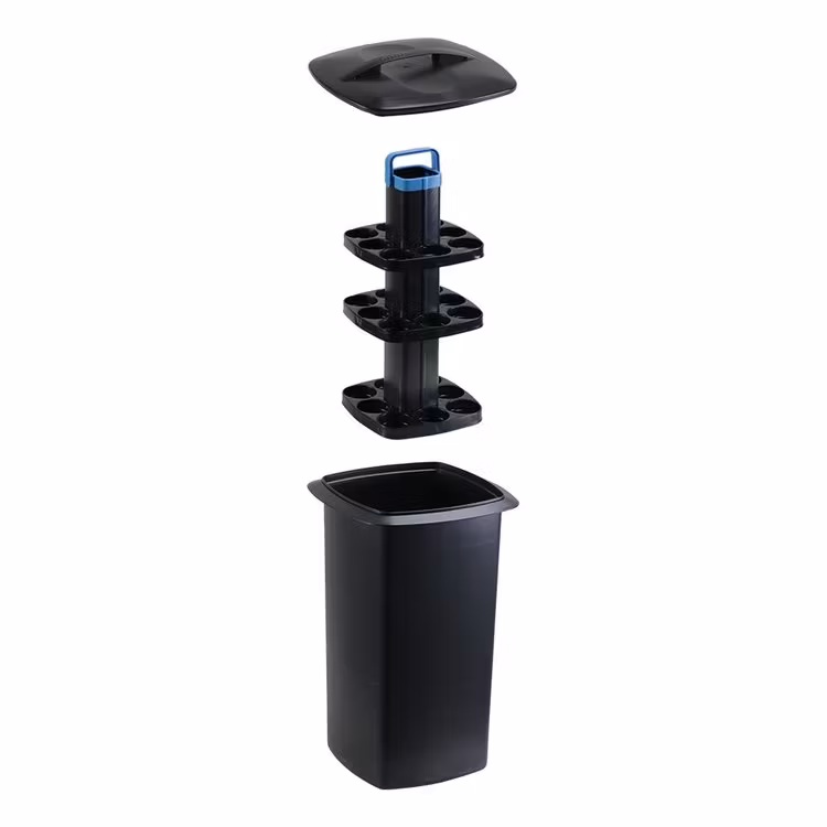 - Inkluderar hink, lock och ställning med handtag och tre plan med utrymme för 24 burkar eller små flaskor och en vinflaska