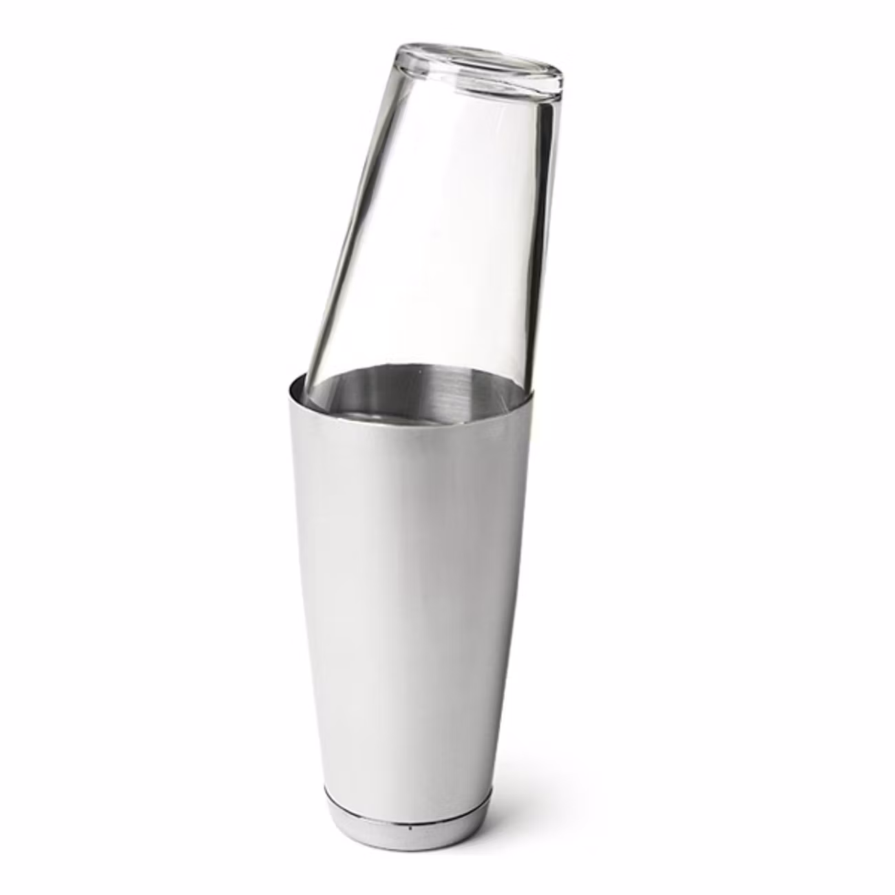 Professionell Boston Shaker tillverkad av rostfritt stål och gjutet glas. Behållaren rymmer 80 cl och glaset 45 cl.