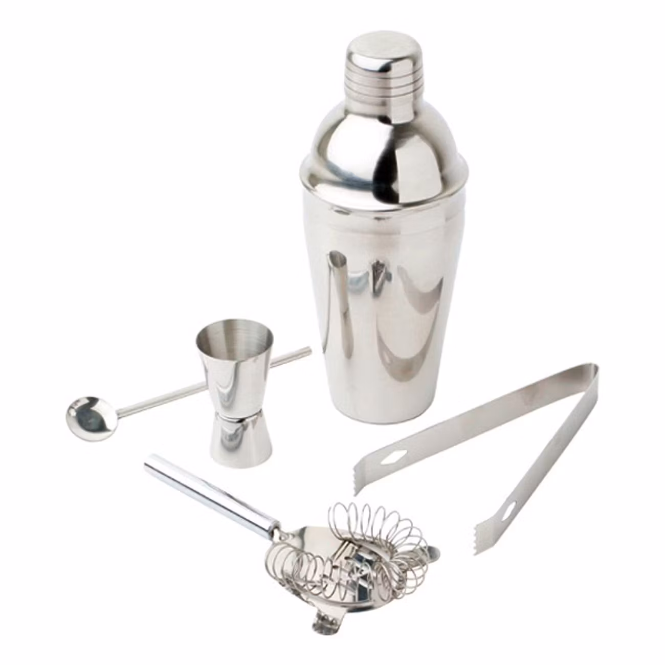 Komplett shakerset i rostfritt stål med allt du behöver till hemmabaren.