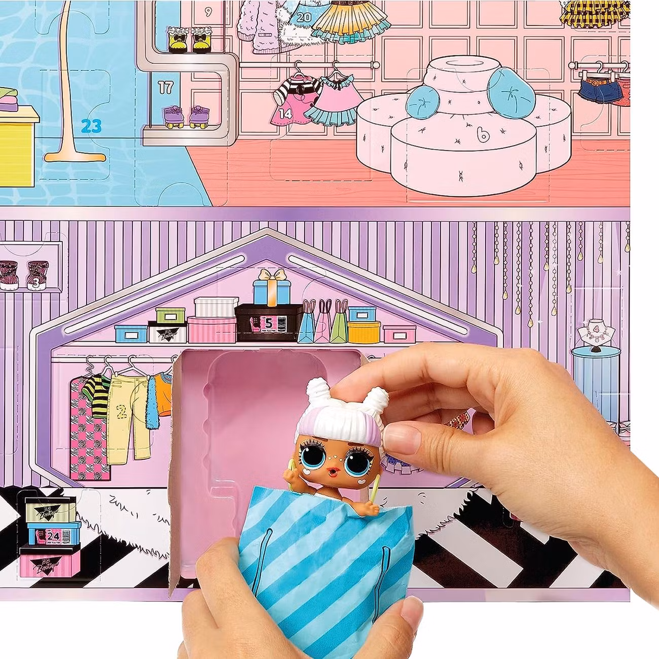 En underbart fullproppad kalender med exklusiv LOL-docka och olika modedelar och accessoarer som gömmer sig bakom luckorna! En superfestlig december väntar där varje dag bjuder på en ny surprise där du mixar och matchar för att skapa spännande kombinationsmöjligheter!