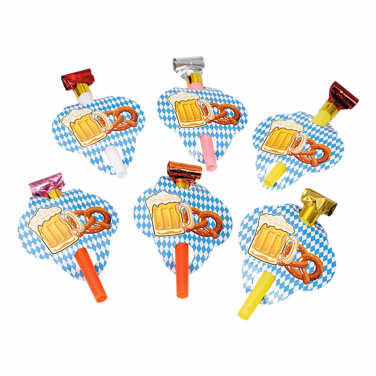 Införskaffa en uppsättning högstämda blåsormar som alla partyprissar kan tuta i på oktoberfesten. Här har vi ett 8-pack som går i olika, tjusiga färger. Givetvis har de ölsejdlar och kringlor på framsidan!