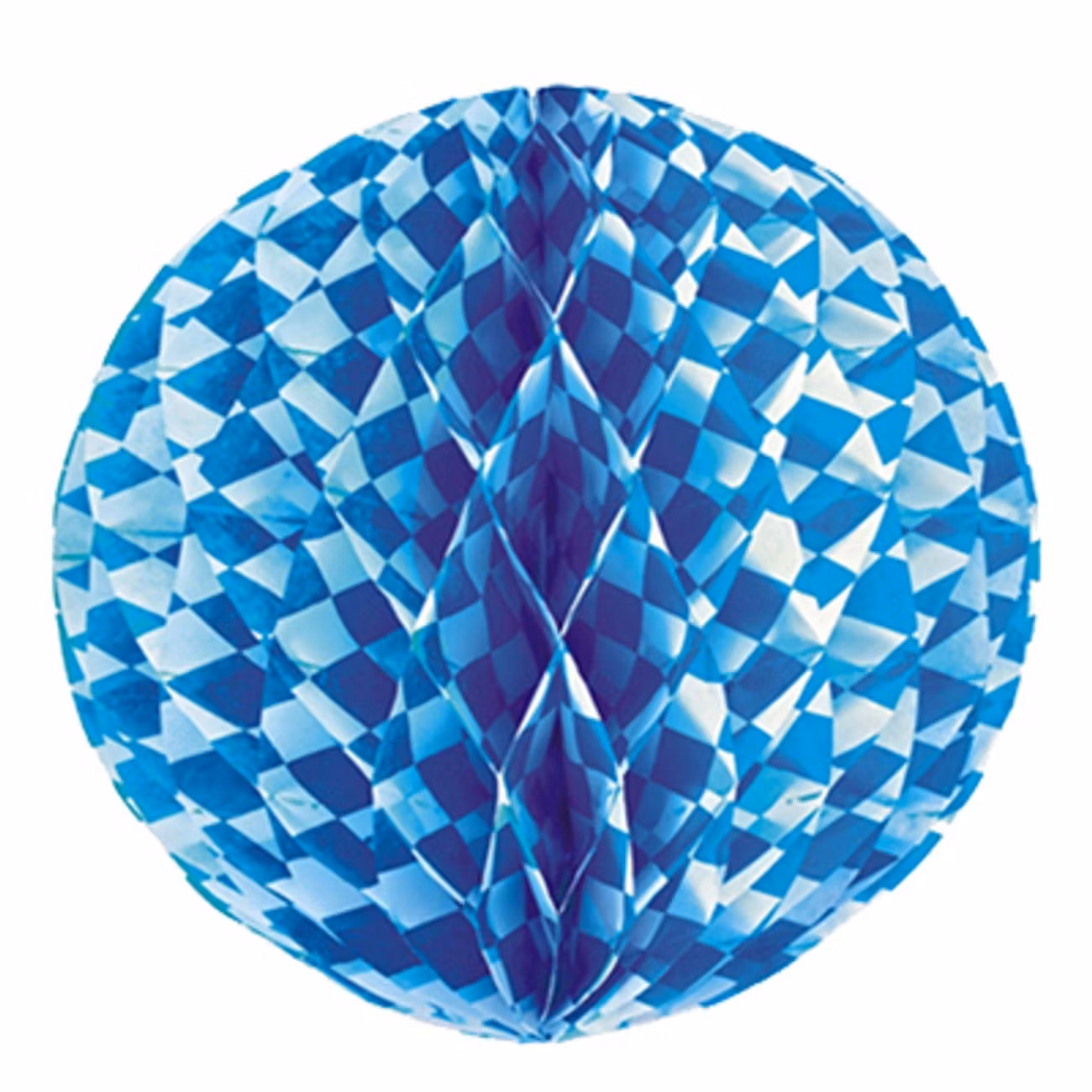 Dekorationsboll Bayersk Blå är av flamsäkert pappmaterial och mäter ca 30 cm i diameter.