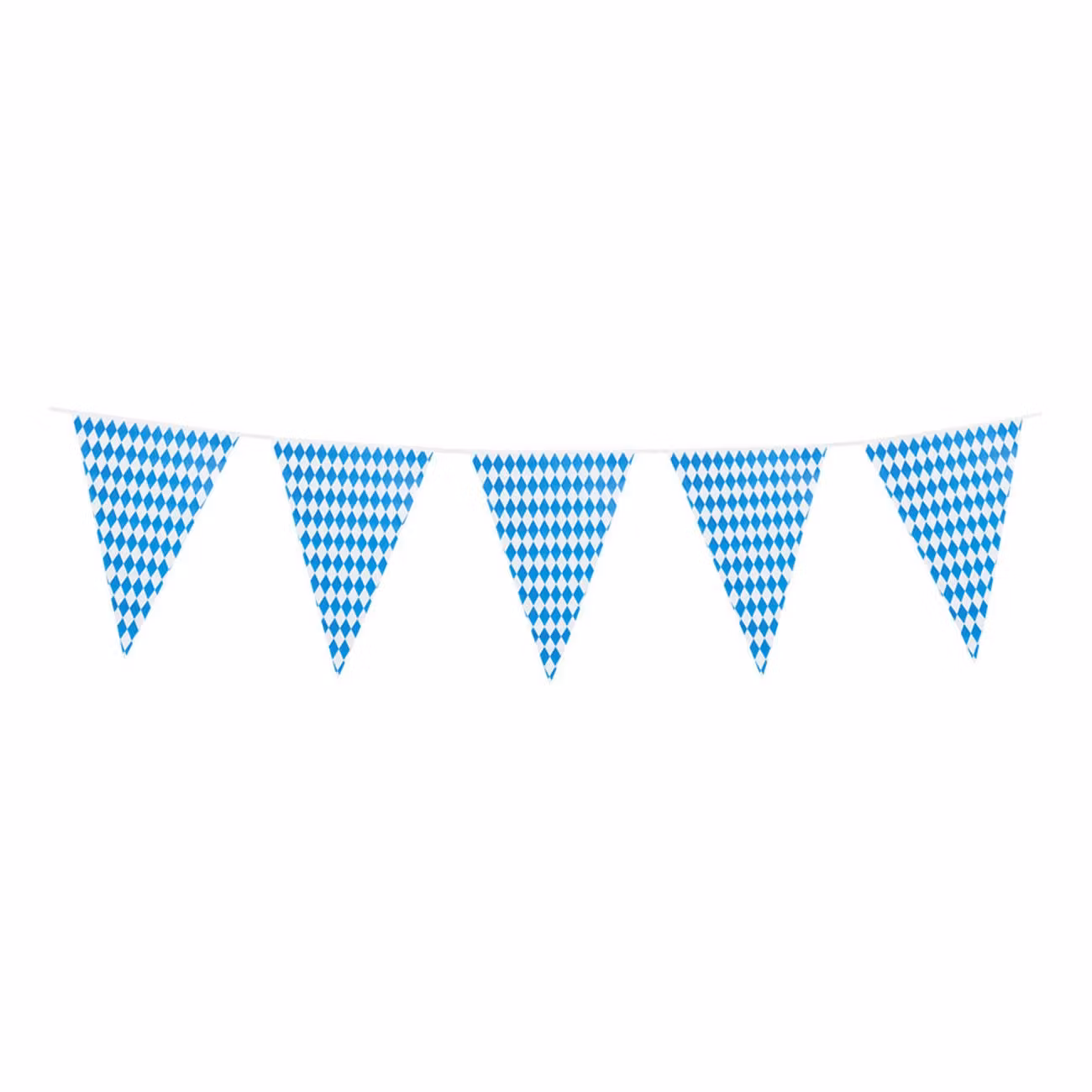 Girlang Bavarisk har en väldigt bavarisk stil i vitt och blått. Går att hängas upp på många ställen, och har motiv på båda sidorna. Girlangen mäter totalt 8 meter lång och vimplarna mäter 31 × 42,7 centimeter stora.