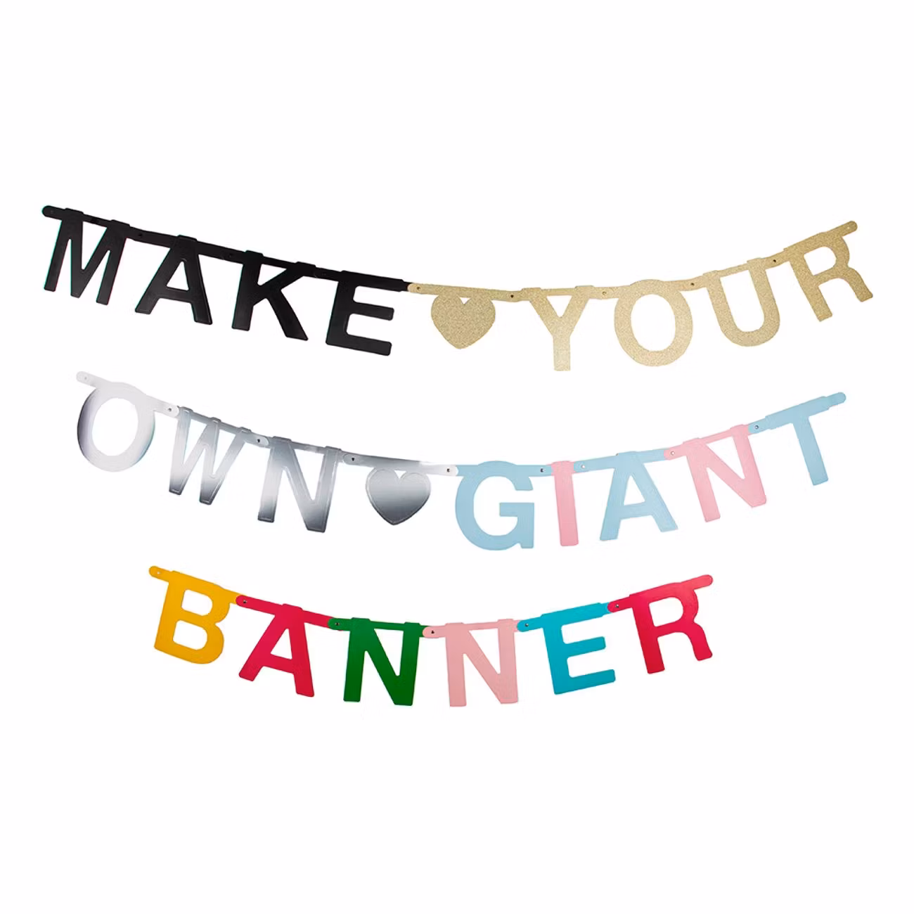 Hur överraskar du din bästa kompis, chefen, mamma och pappa eller dig själv? Om du inte tidigare haft något tillvägagångssätt så vill vi varmt rekommendera denna Gör-Det-Själv XL-Girlang. Välj mellan en hel drös av bokstäver, siffror och tecken, koppla sedan ihop dem och skapa till exempel: "Pappa 50 år", "Stort Grattis" eller "Fyf*n vad vi är bra!". Ja, kombinationerna kan göras oändliga och girlangerna kommer i flertalet olika färger och kombinationer, vilket gör att de fungerar till alla tillfällen - födelsedagar som halloween och babyshower.