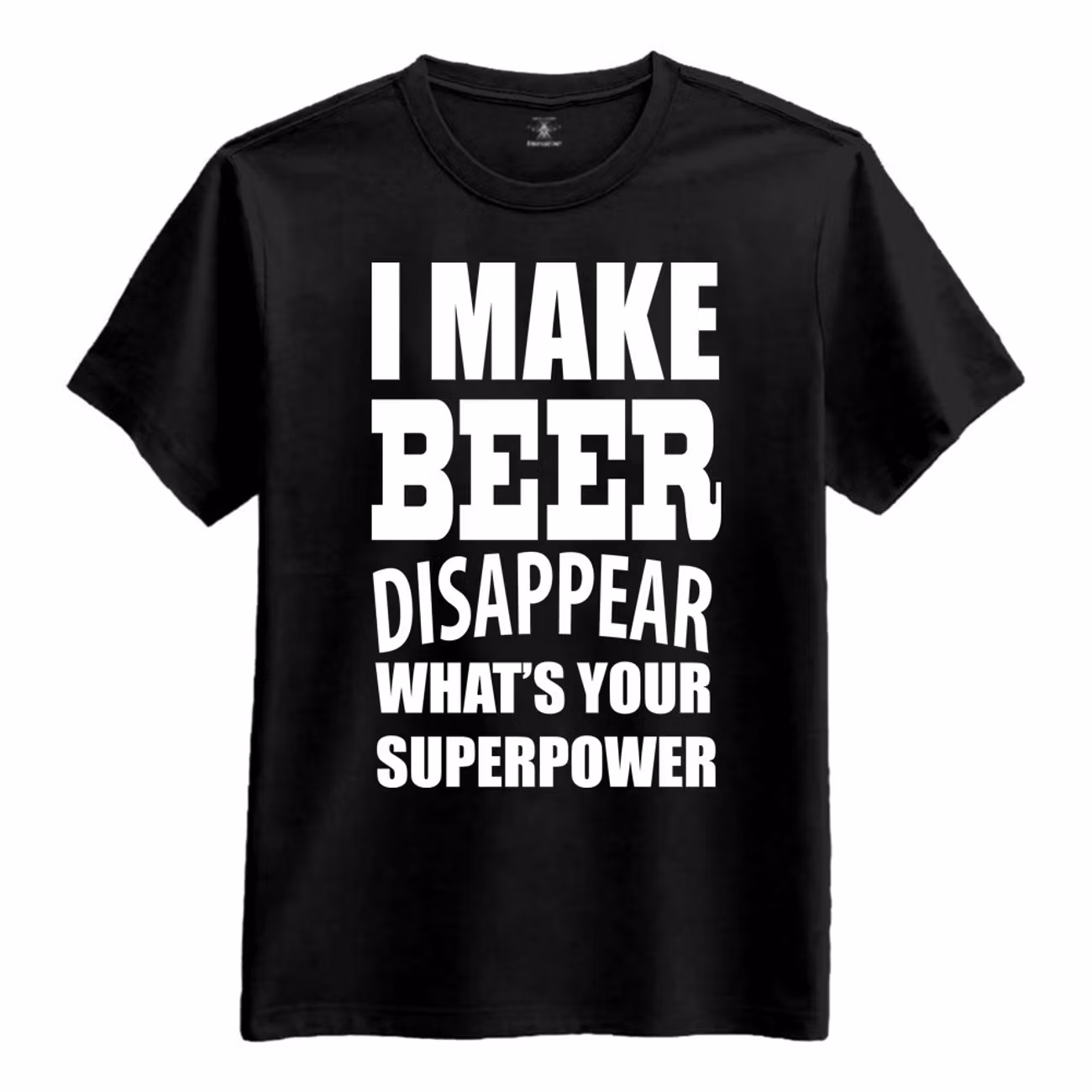 I Make Beer Disappear T-Shirt är tillverkad 100% bomull och har texten "I Make Beer Disappear" tryckt på bröstet. Finns i storlekarna Small, Medium, Large, X-Large. Säljs styckvis.