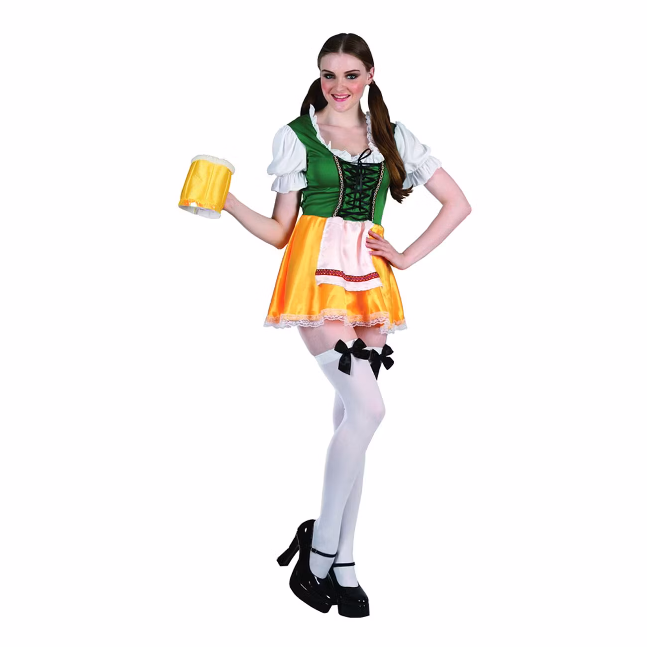 inkluderar en gul kjol som sitter ihop med den tillhörande överdelen. Komplettera med ölsejdel och knähöga strumpor för den perfekta outfiten. Finns i storlekarna: One size.