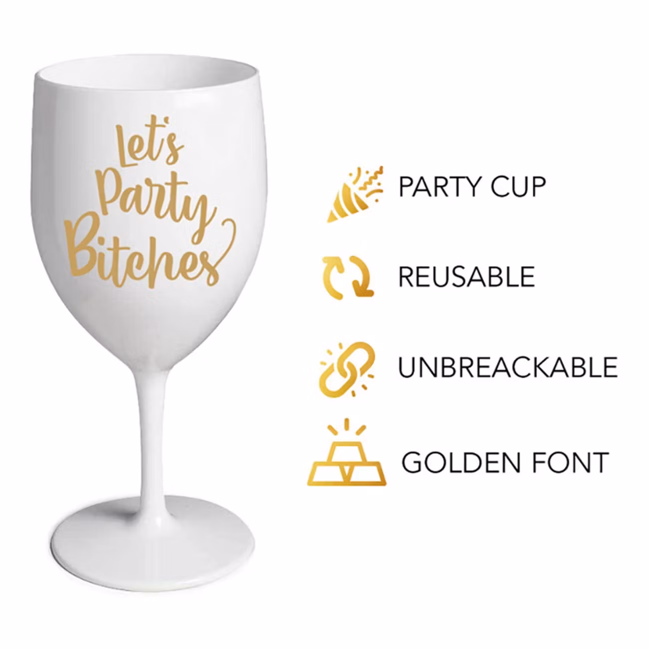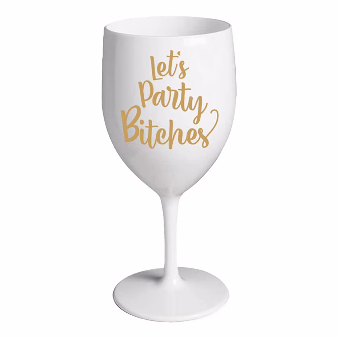 Let's Party Bitches Vinglas är ett ypperligt redskap för bubbeldrickande på både möhippor och divorce partyn - eller en regnig tisdag som behöver piggas upp! Det är aldrig fel med bitchkväll.