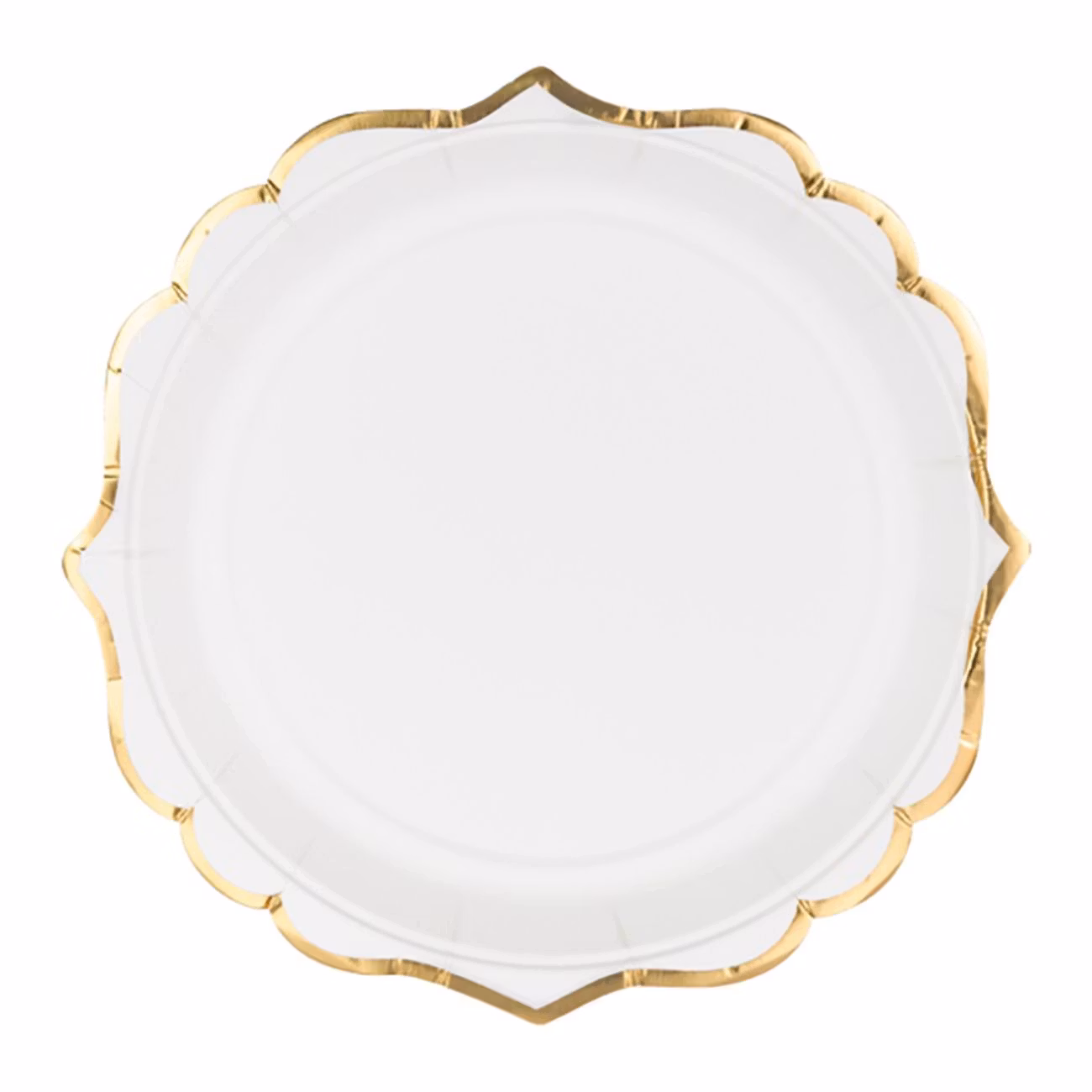 Mysiga papperstallrikar med inslag av tidigt 1900-tal - perfekt till babyshower-kalaset eller födelsedagskalaset. Tallrikarna kommer i en vit färg med guldkant och dem osar lyx, det vågar vi lova!