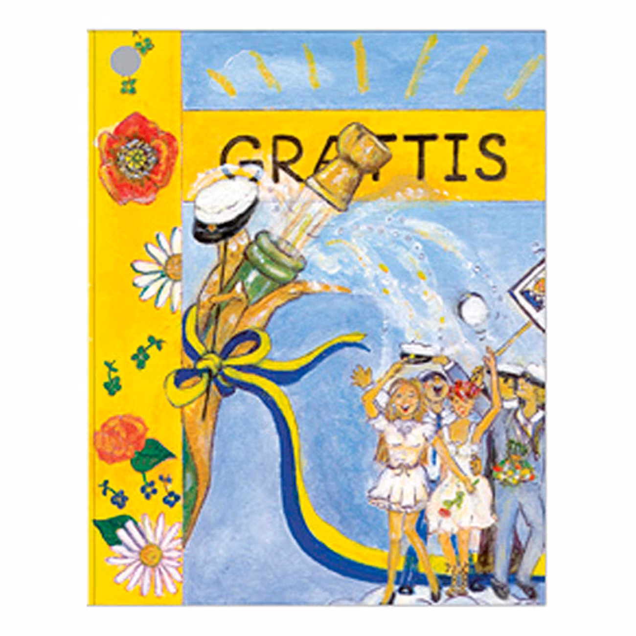 Handmålat och riktigt fint grattiskort med festliga studentmotiv att ge till studenten på den speciella dagen.