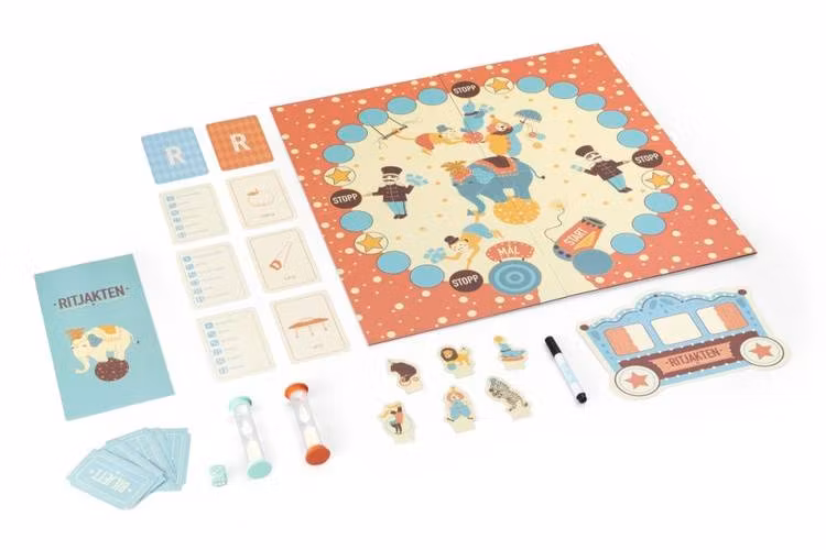 Välkommen till Ritjakten - det första rita-och-gissa-spelet där alla i familjen kan spela ihop, oavsett ålder. Dra ett kort, läs vad som står och börja rita - dina motspelare tävlar alla nu om att först gissa rätt innan tiden är ute. För den som inte lärt sig läsa än finns specialgjorda kort med både ord och bild att rita av. Dessutom får de minsta ett eget timglas som ger lite extra tid jämfört med dom äldre spelarnas timglas. Kort sagt - kan du rita en huvudfoting kan du vinna Ritjakten!