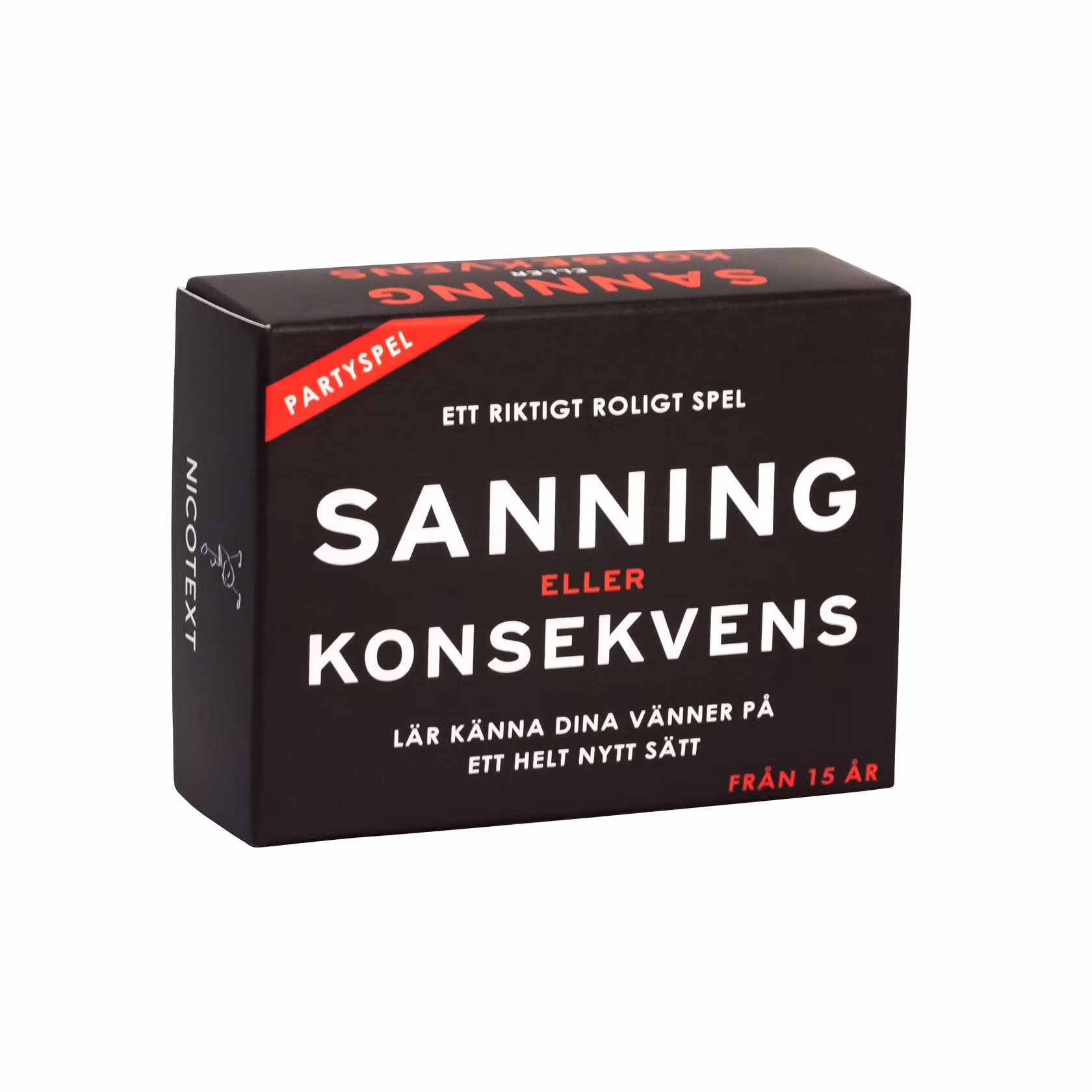 Detta är ett av Sveriges mest populära partyspel. Välj om du vill svara på en fråga (sanning) eller göra en utmaning (konsekvens). Dra ett kort och svara på frågan eller utför uppdraget. Spelet fortsätter sedan medsols.