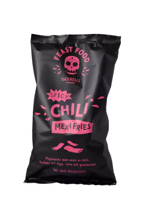 Våra CHILI MEXI FRIES är spröda sombrerosliknande majschips i smak av chili. Chipsen gör sig rättvisa både som tillbehör till din texmex-rätt såväl som att avnjuta till fredagsmyset – precis som dem är. Perfekt till dipp, salsa och guacamole!