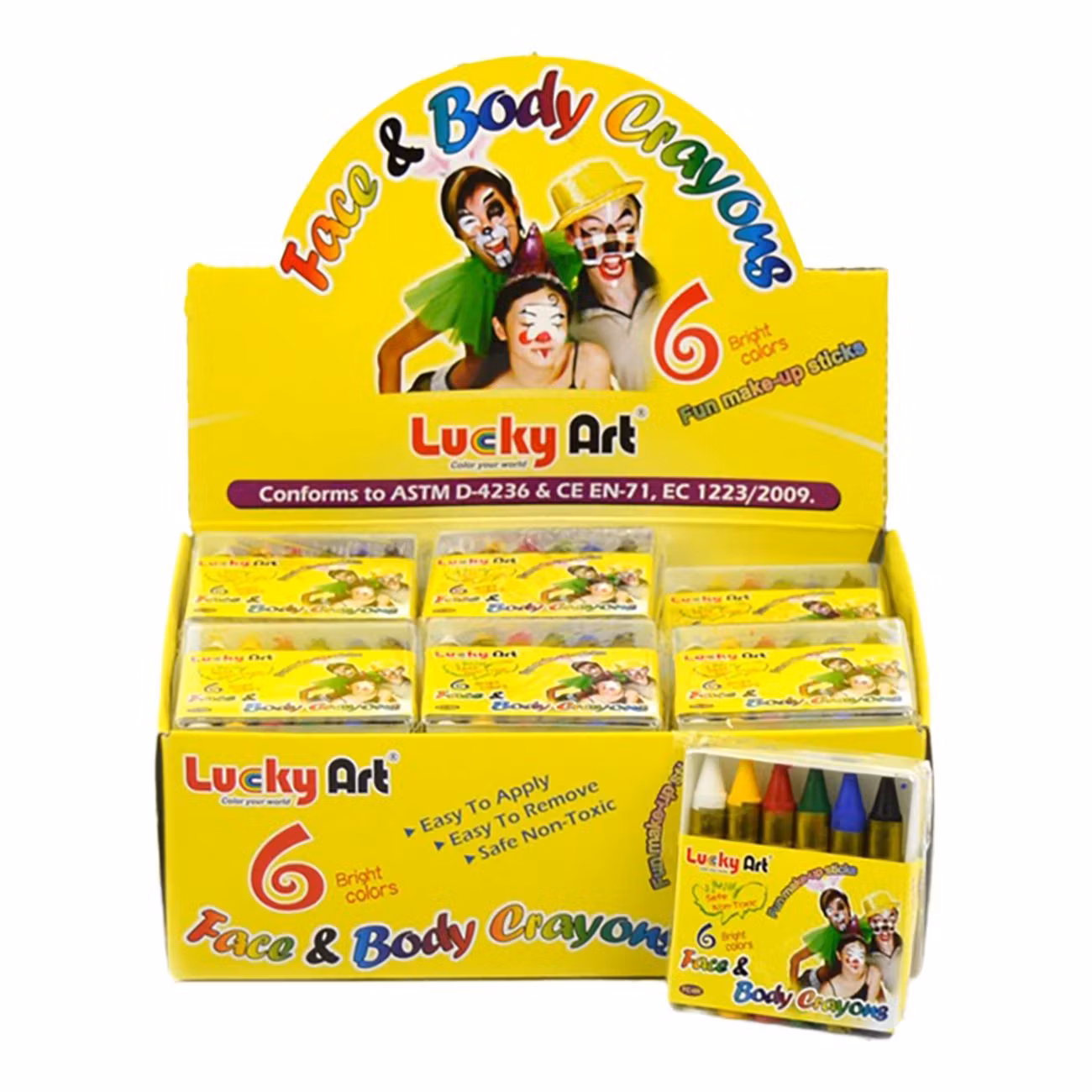 Vad vill du bli idag? En tiger, en clown eller kanske en rymdvarelse? Med dessa kritor kan du måla precis vad du vill i ansiktet och på kroppen. Plocka gärna fram kritorna nästa gång det är dags för barnkalas och låt dina små gäster bestämma vad de skulle vilja bli. Och det är ingen fara, när man vill bli sig själv igen tvättar man enkelt bort färgen!