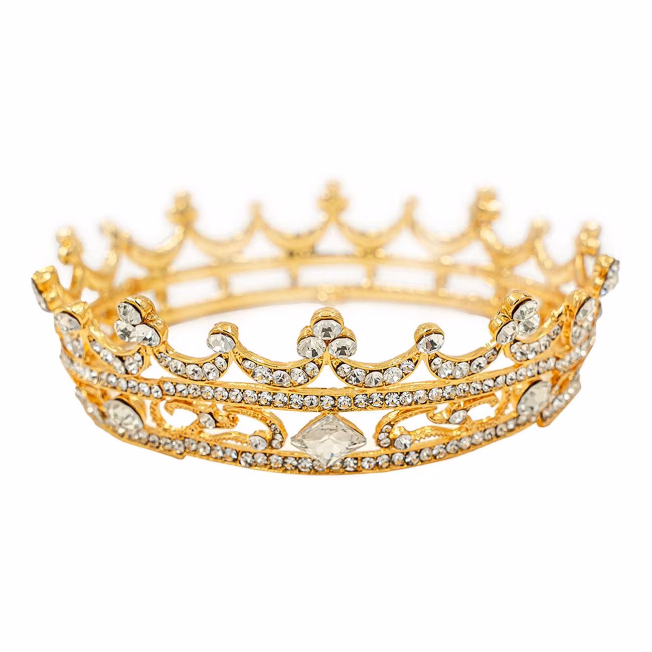 Kristallkrona Guld passar perfekt till möhippan, bröllopet eller som lyxig accessoar när du ska klä ut dig till en kunglighet på maskeradfesten! Kronan fästs på huvuden med hjälp av medföljande hårnålar.