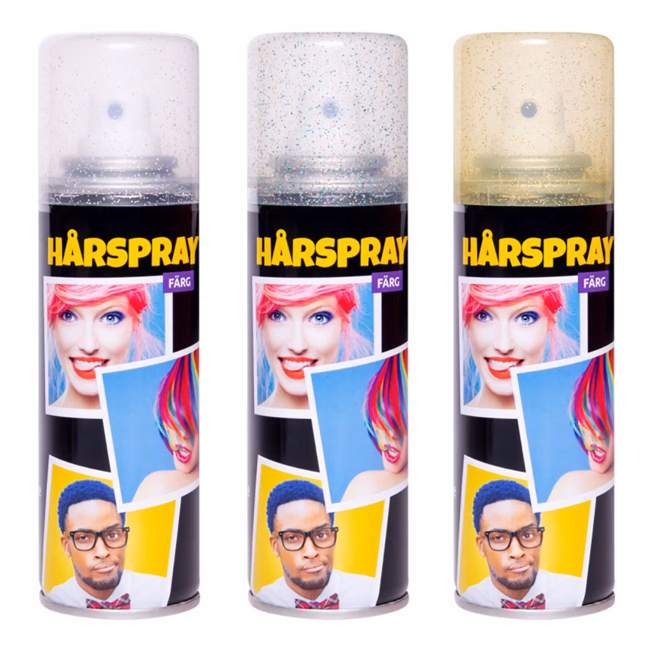 Färgspray Glitter är en hårspray som gör ditt hår härligt glittrigt och snyggt. En sprayburk innehåller 125 ml glitterfärg och kan enkelt tvättas bort med hjälp av schampo och vatten.