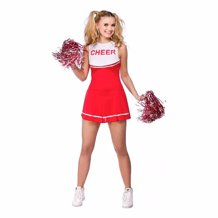 Klä ut dit till en hejarklacksledare, så som vi är vana att se dom i amerikanska filmer, på årets halloween eller på festen med sporttema eller på det amerikanska grillpartyt. Det här paketet inkluderar en röd och vit klänning och två stycken pom poms.
