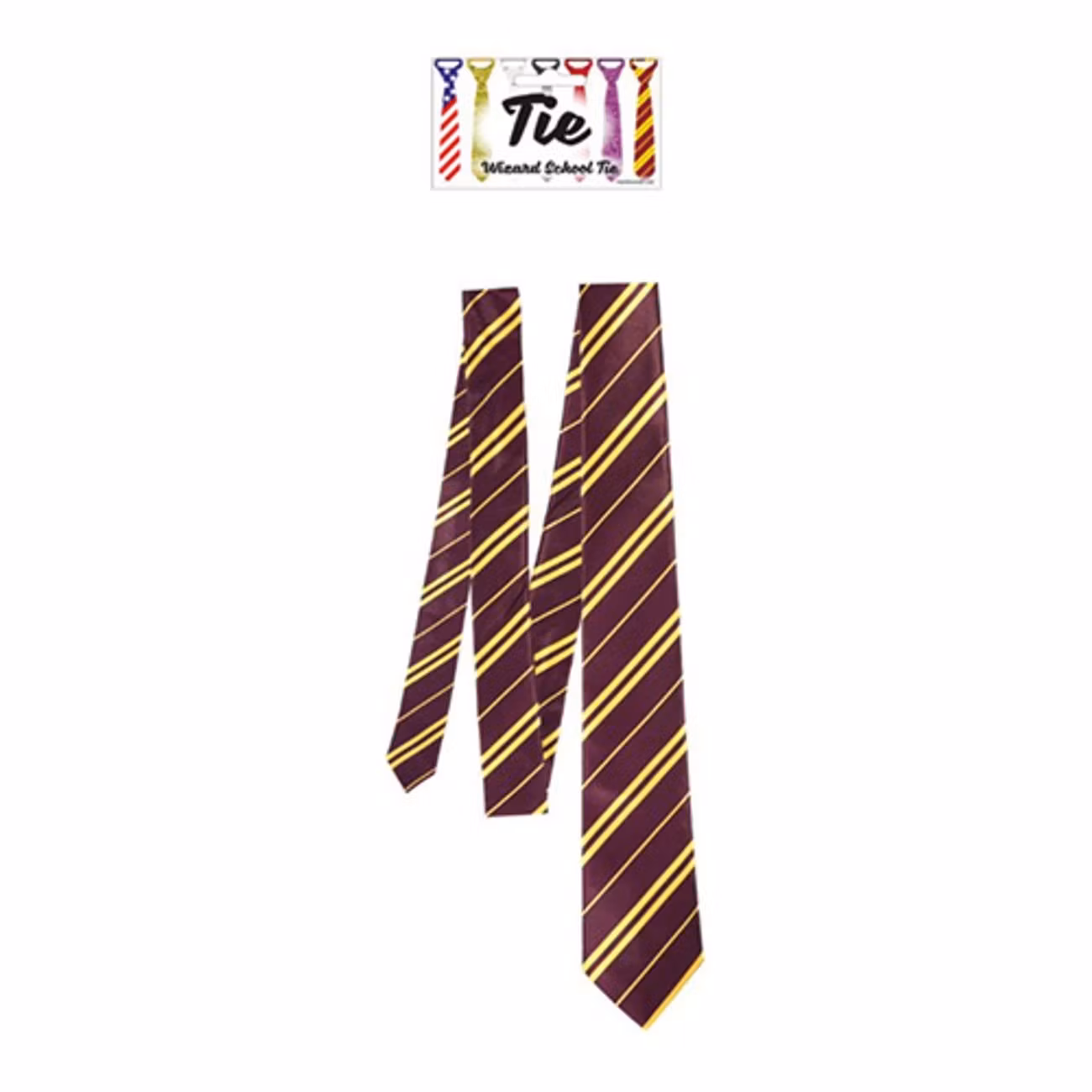 Är du bjuden på kalas och vill komma till kalaset utklädd till Harry Potter? Den här slipsen kommer att passa perfekt. Den är randig i rött och gult, färgerna som representerar elevhemmet Gryffindor. Nu är det bara att börja öva på trollformlerna. Arresto Momentum, Avada Kedavra och Lumos Maxima!