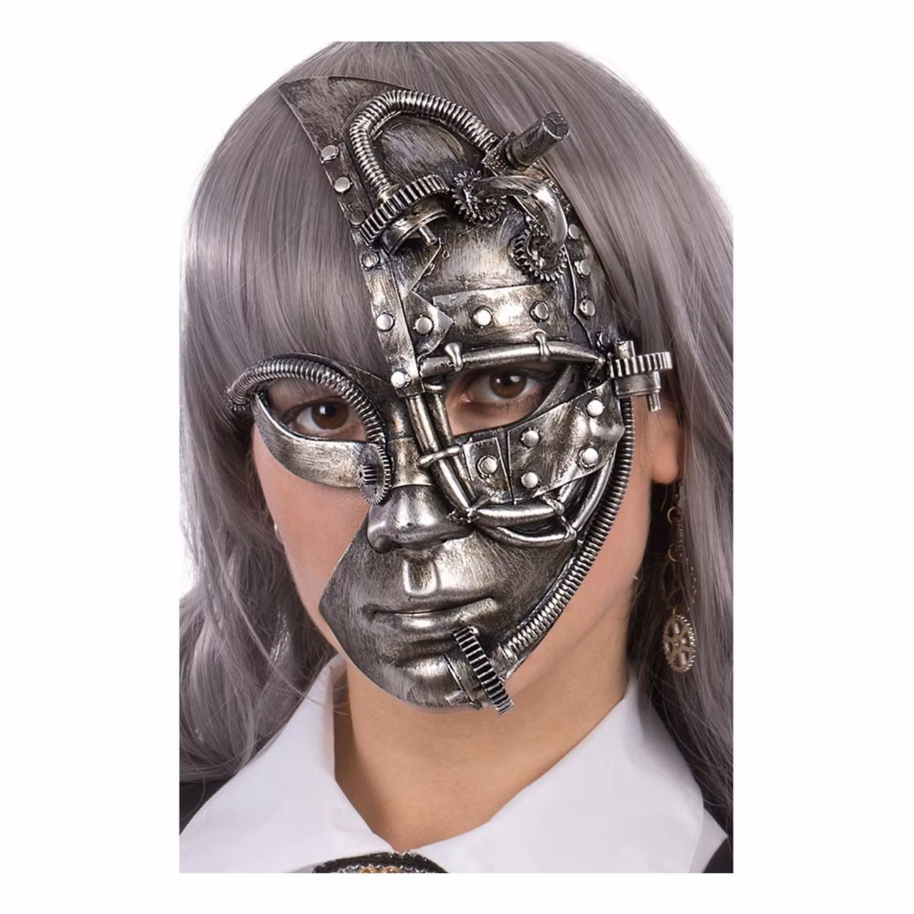 Inom steampunk är varje detalj viktig, och den här masken är full av fantastiska detaljer! Med ansiktet täckt av skruvar och kugghjul och rör kommer du passa in perfekt i steampunkvärlden.