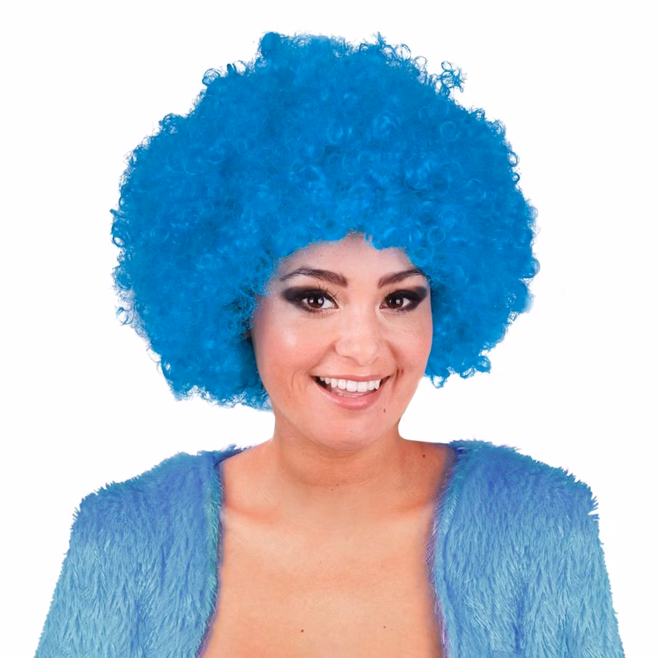 Turkos Afroperuk är en krullig peruk i turkos färg. Passar lika bra som maskeradperuk som clownperuk.