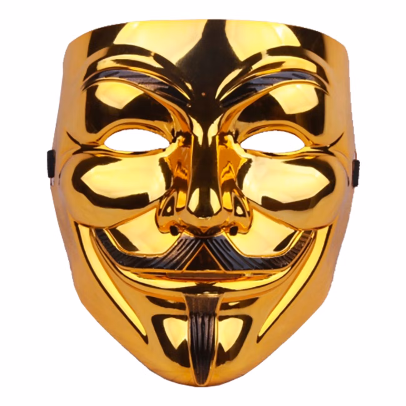 Den legendariska V For Vendetta-masken har funnits i vårt sortiment en längre tid, men inte i guldigt utförande. Ett lite snyggare och lyxigare alternativ av mask, det må vi säga!