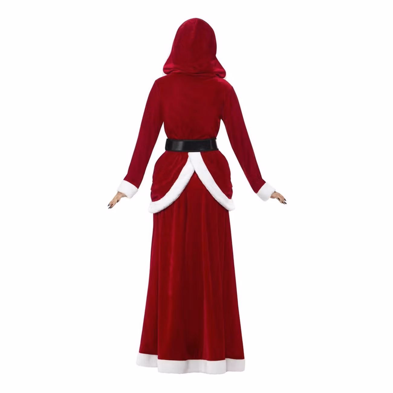 Tomtemor Deluxe Maskeraddräkt inkluderar en klänning med luva och ett tilhörande bälte. Dräkten är optimal för tomtemodern som vill se extra elegant ut. Kommer i damstorlekarna large och x-large.