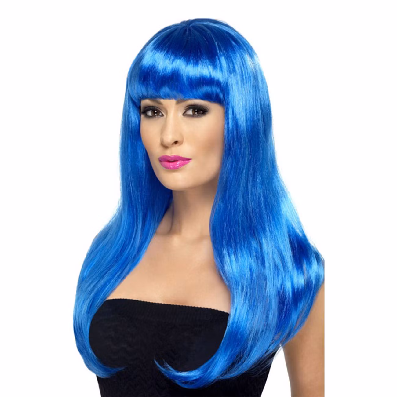 till många olika kostymer, allt från förförisk sjöjungfru till sexig rymdprinsessa. Peruken är blå med långt, rakt hår och lugg. One size (vuxenstorlek)