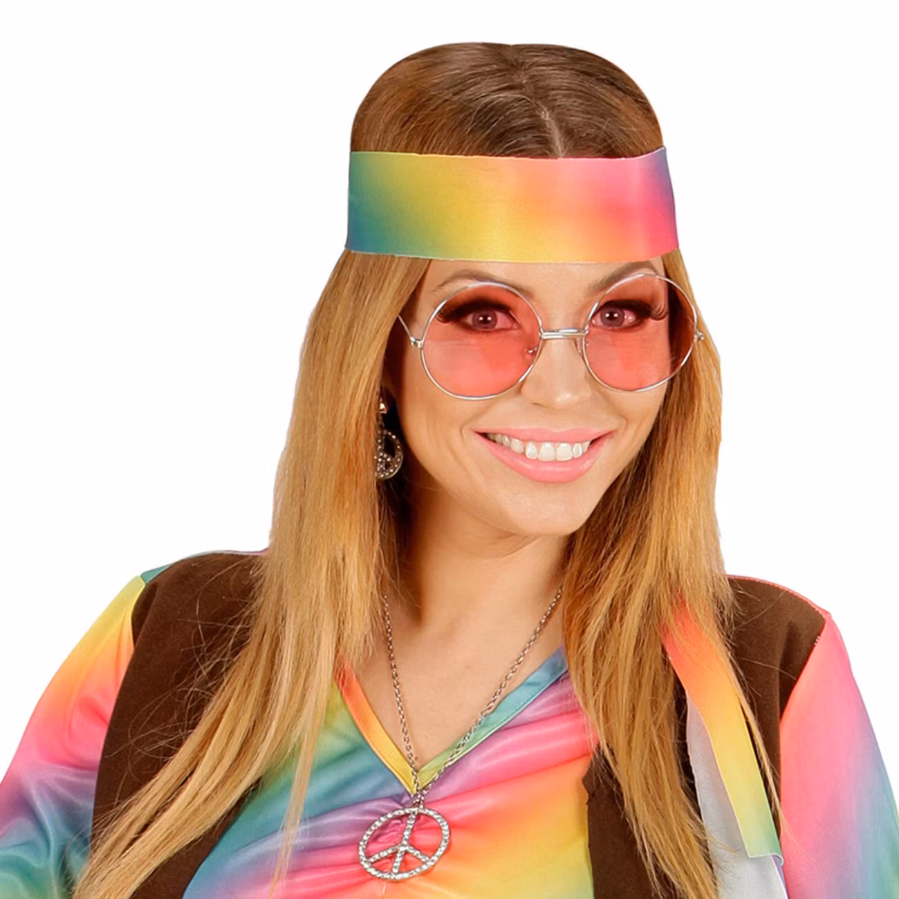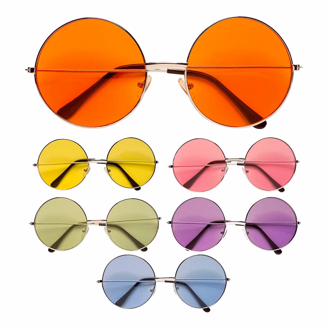 Fixa den kompletta hippielooken med dessa groovy färgglada glasögon! Brillorna utstrålar 60-/70-talshippie som bara den och är ett måste när du vill köra all-in på maskeraden.