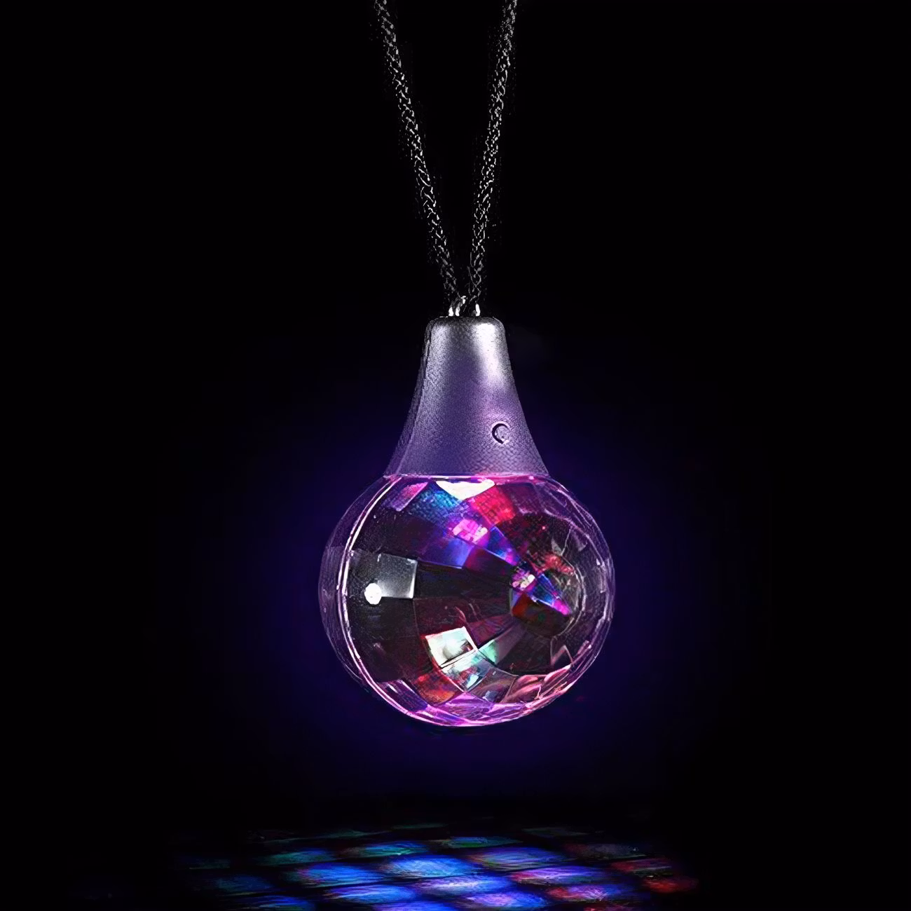 Med en läcker outfit och ett halsband likt en lila discokula skulle du passa in i ABBA-gänget när du bär med dig din alldeles egna ljusshow runt halsen. Den kristalliknande kulan kan användas till 70-talsmaskeraden eller när du känner för att piffa upp din outfit med ett halsband som verkligen är en accessoar utöver det vanliga!