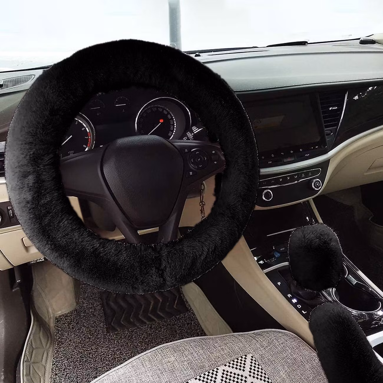 Nu har vi fått nog! Aldrig mer en outhärdlig biltur med iskall ratt och stelfrusna fingrar! I det här ljuvliga kitet får du inte bara härligt fluff runt ratten din, det medföljer även skydd för växelspak och handbroms - allt för en trevligare färd!