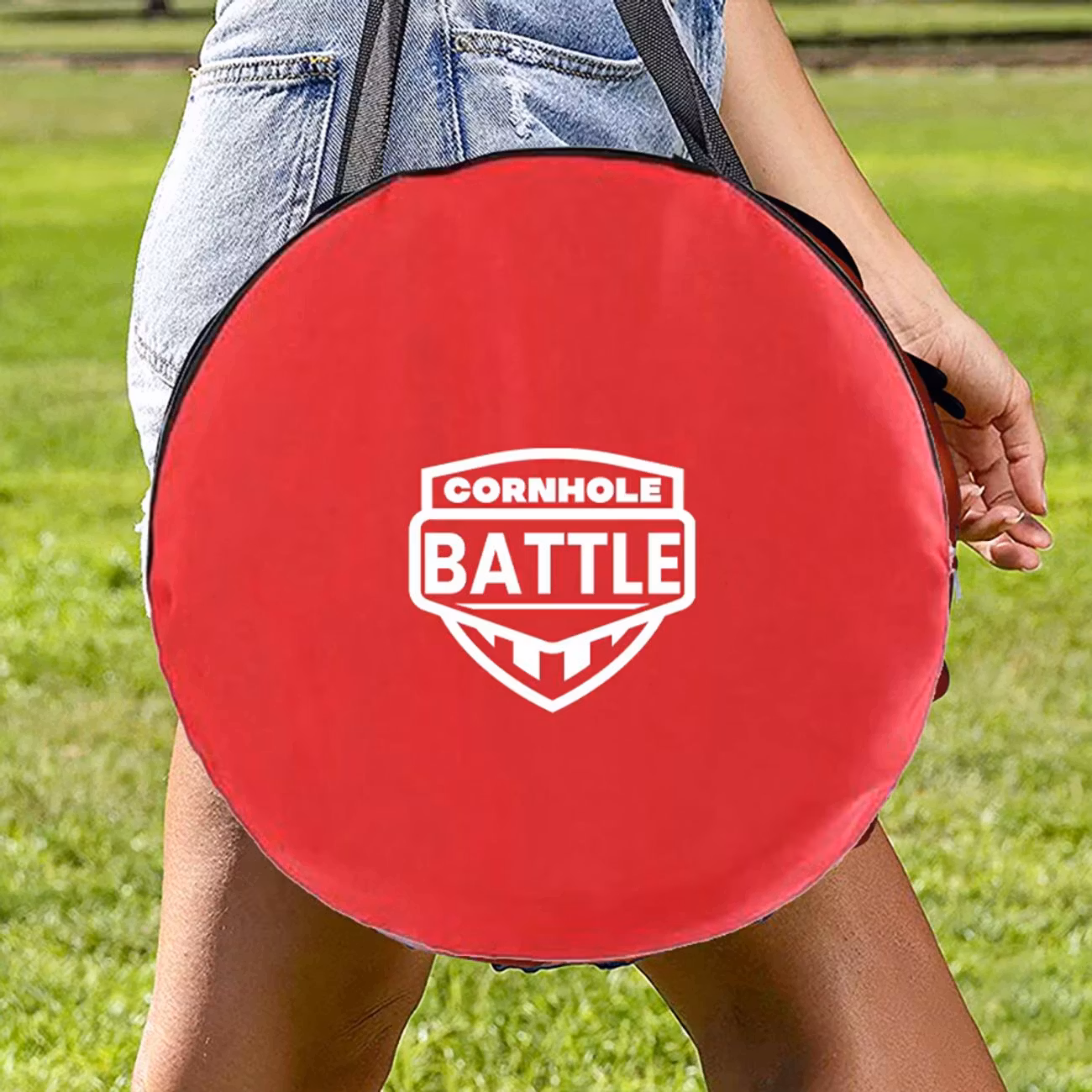 Cornhole Battle Trädgårdsspel inkluderar ett komplett cornhole-kit med vikbara canvasbrädor i nylon som gör detta spel ypperligt för att spela på stranden, på campingen eller i sommarstugan. Spelet går ut på att träffa motståndarens brädhål med de röda eller blå påsarna och därav samla poäng. De två brädorna ska vara placerade 8 meter från varandra och spelarna måste göra sitt kast bakom sin bräda. Ett fantastiskt kul utomhusspel för hela familjen eller kompisgänget i sommar!