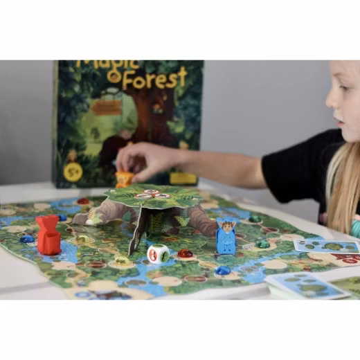 Imponerande! Den Magiska Skogen är snyggt designat och känns väldigt genomtänkt med att de vackra träpjäserna har små ryggsäckar där man placerar sina ädelstenar och små finurliga spelregler som vi normalt sätt inte ser så ofta i ett barnspel.