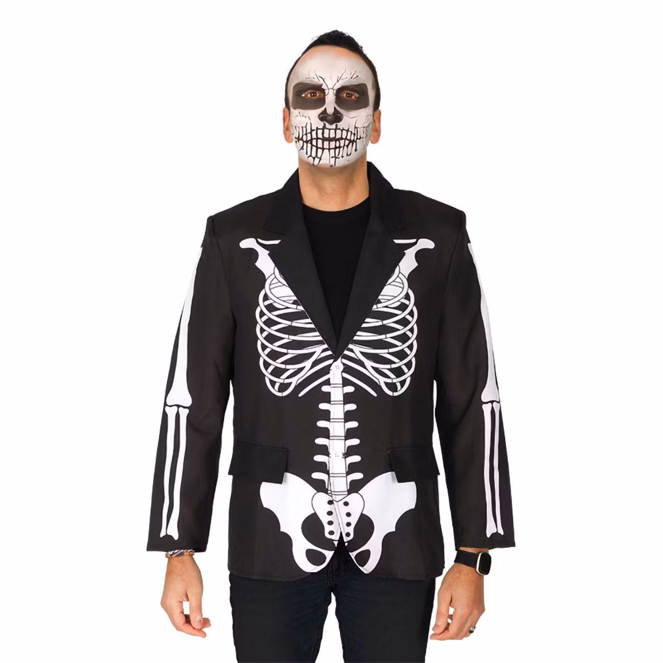Klä upp dig med en dödligt stilig twist i denna skelettkavaj! Perfekt för halloweenfesten när du vill kombinera skräck och elegans. Med denna fräsiga kavaj kan du enkelt förvandla en klassisk outfit till en kuslig partylook – matcha bara med egna brallor och smink!