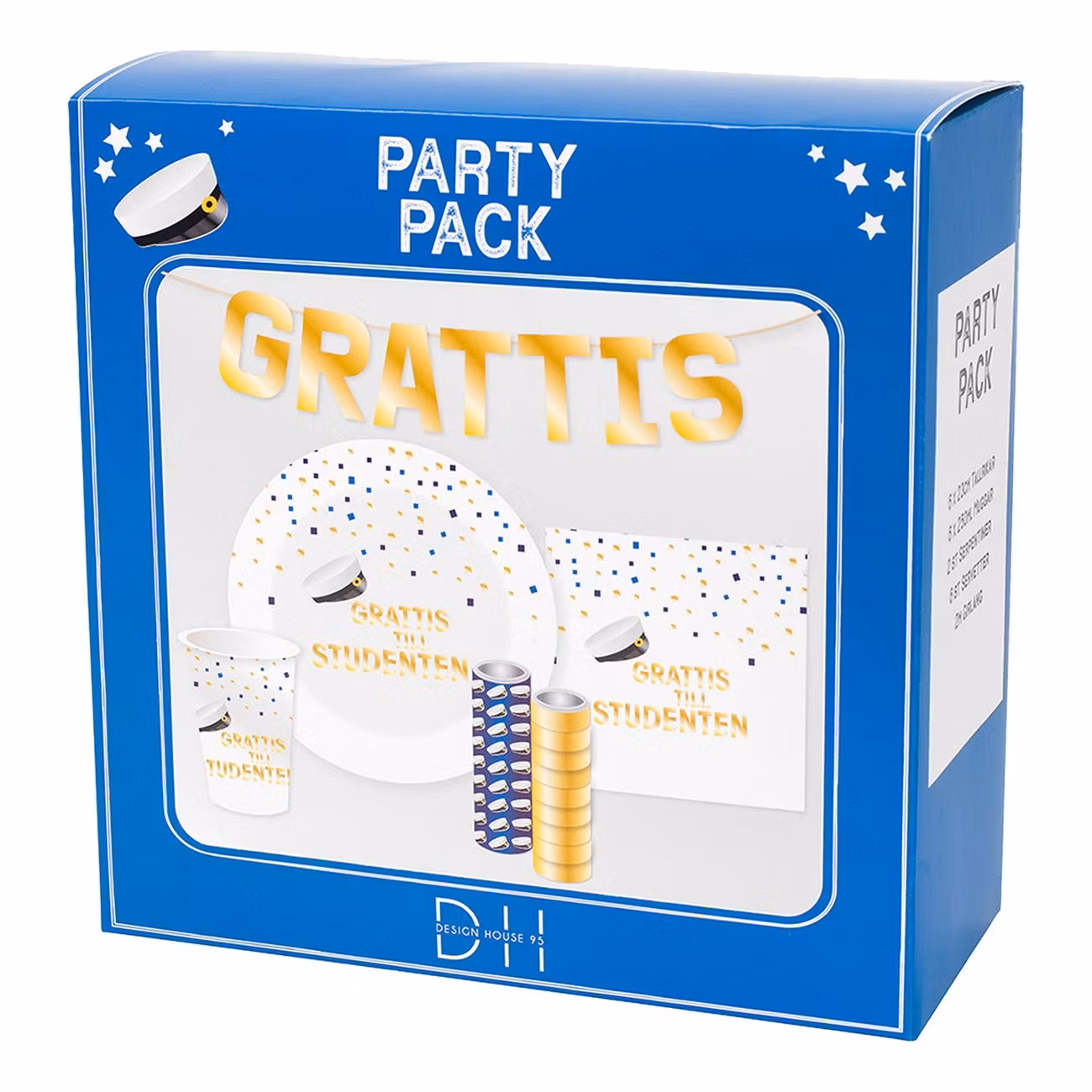 Styr upp en perfekt studentmottagning med detta dukning- och dekorationskit. Allt matchar perfekt och du får ett komplett kit med allt som behövs oavsett om det blir fika eller mat. Vi röstar på smörgåstårta!