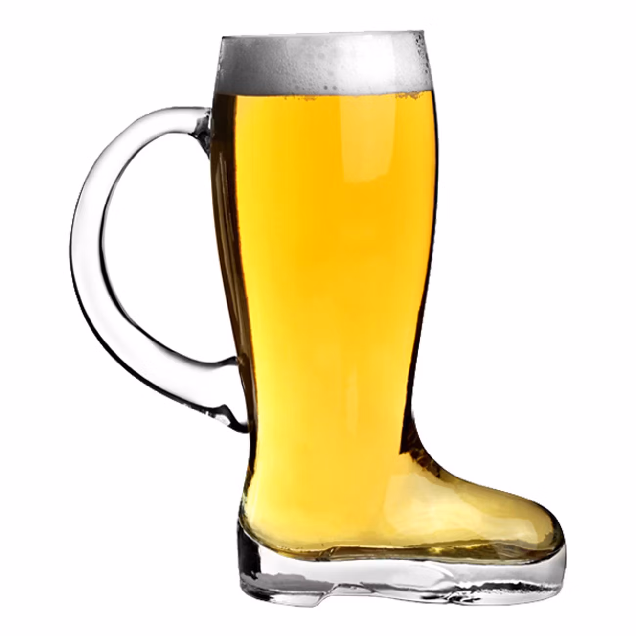 Skaffa dig ett rejält glas som faktiskt rymmer den mängd dricka som du vill ha. Skippa små och fjuttiga glas och vänd dig istället hitåt. Här har du ett enormt glas som är format som en stövel och som har ett stort handtag som gör den enkel att greppa. Den kan fyllas med såväl öl som andra stora drinkar.