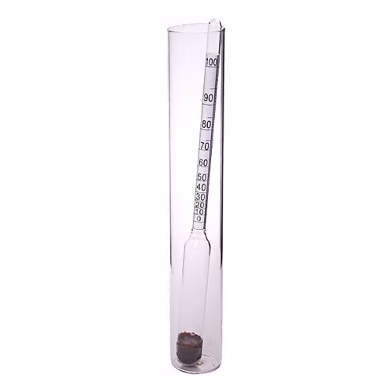 Alkoholmätare för att mäta alkoholhalten i sprit.