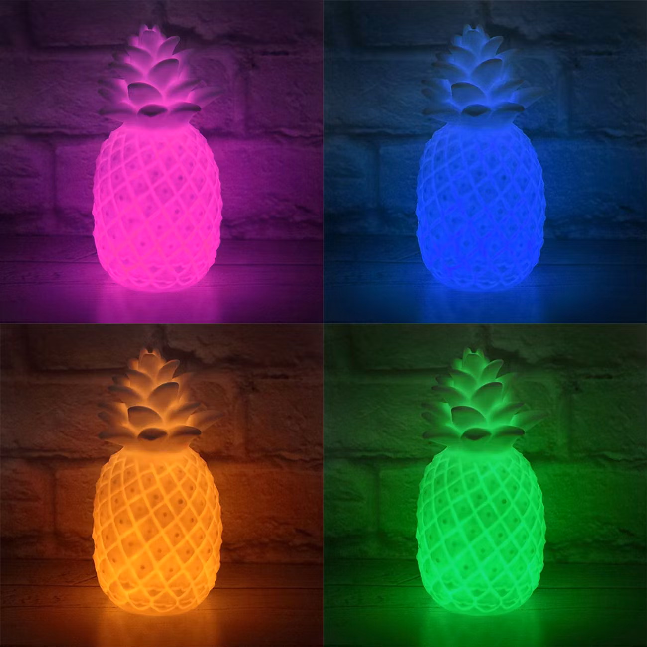 En nattlampa som lyser i flera härliga färger skrämmer lätt iväg mörkrädslan! Om lampan dessutom ser ut som en snygg ananas? Tja, då är det nog stor chans att du kommer att vilja ha den tänd även på dagen. Den här lampan är dessutom batteridriven vilket innebär att du kan placera den var du vill!