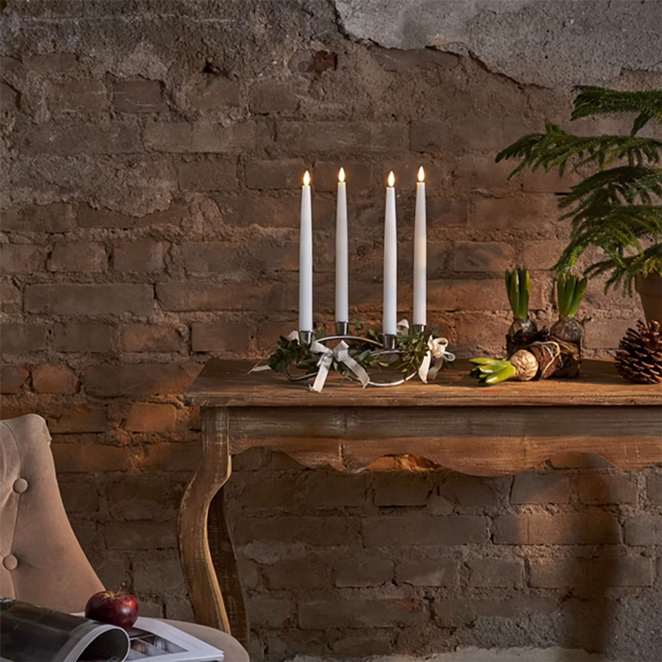 Antikljus LED inkluderar 4 stycken antikljus i höjden 28,5 cm. Ljusen har en slät yta och en låga som ger ett naturtrogen sken och utseende. Inklusive fjärrkontroll.