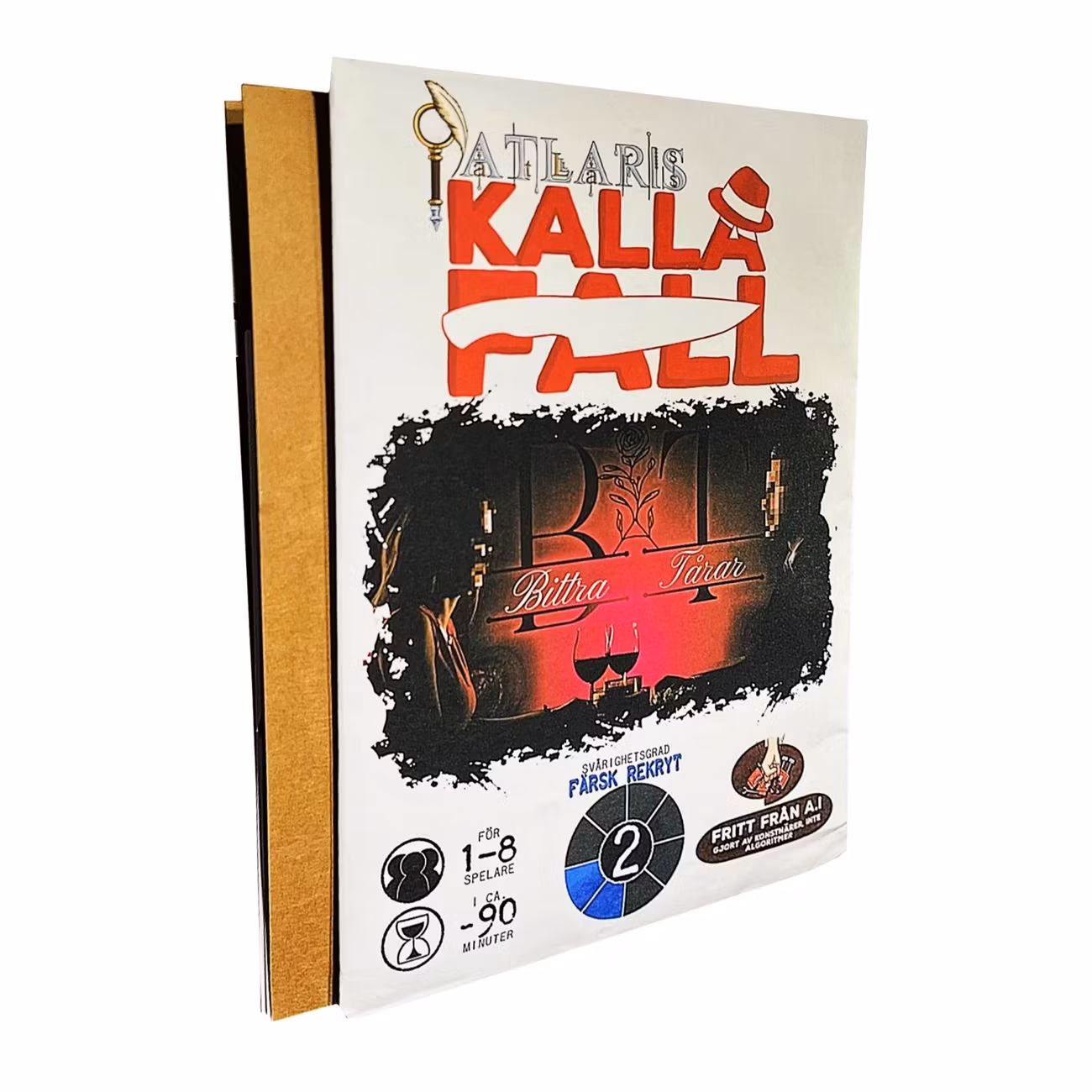 Atlaris Kalla Fall Bittra Tårar är ett mordmysteriespel som utspelar sig efter ett dödsfall vid tolvslaget på nyårsnatten i Stockholm. Spelet har svårighetsgrad 2 av 8 och passar när du vill ha något klurigt men ändå överkomligt att sätta tänderna i tillsammans med vänner eller familj. Perfekt när det behövs lite mer spänning än vanligt!