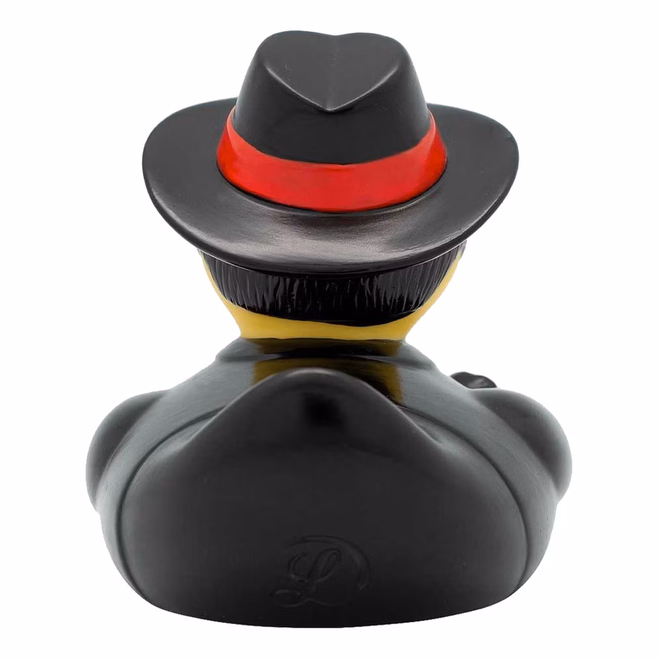 Badanka Al Capone är en gul badbanka med en svart kostym med en röd slips, en svart hatt, solglasögon, en cigarr i näbben och en pistol i handen. Badankan är 8,5 cm stor.