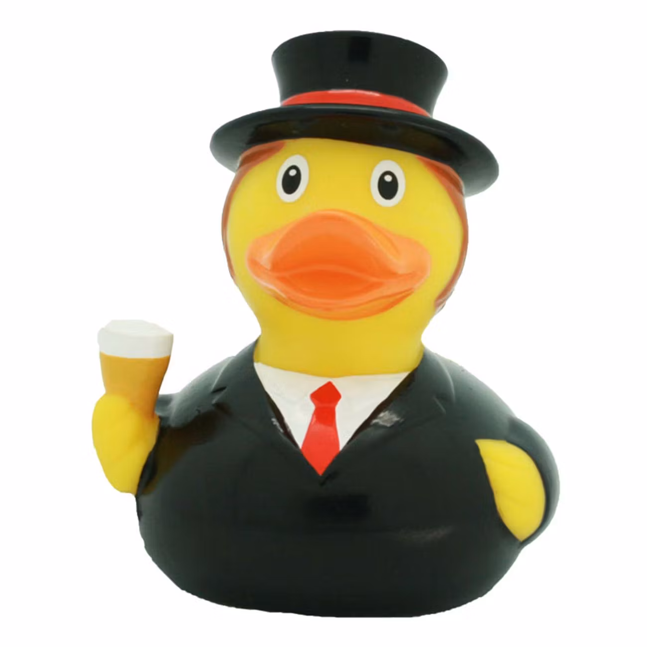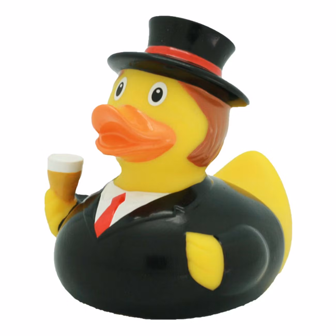 Badanka Brudgum är en gul anka av gummi som flyter i vatten. Ankan är iförd en kostym tillsammans med en röd slips och en hatt med ett rött band. I ena handen håller badankan en öl.