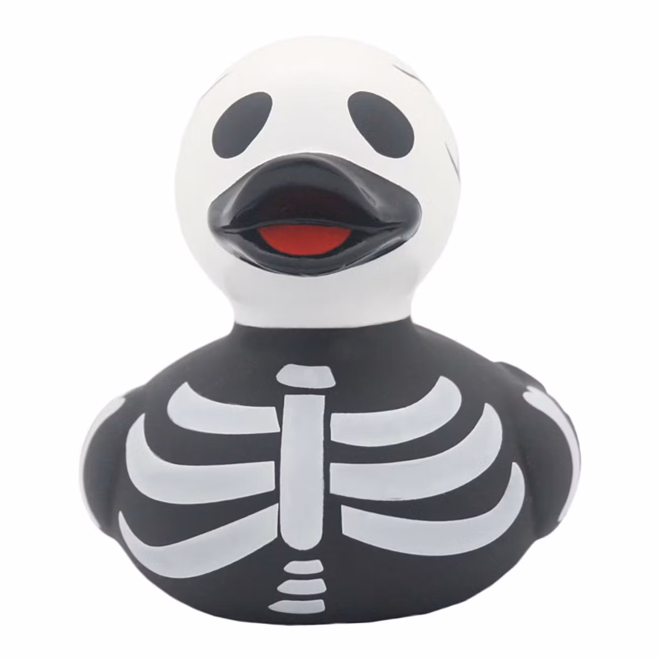 Nu måste du vara riktigt modig! Hur skulle du annars våga bada med en badanka som ser ut som ett skelett? Vi har dock ändå en känsla av att det här lilla ankskelettet är ett snällt skelett som allra helst bara vill guppa omkring i lite mysigt badskum i ditt badkar.