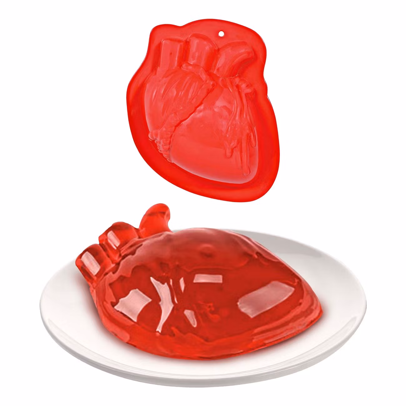 Bakform Hjärta Autentiskt mäter 16 x 12 cm och är tillverkad i PVC. En perfekt bakform för dig som vill bjuda på något riktigt läbbigt nästa halloweenfest! Används endast till kalla efterrätter gjord på gelatin.