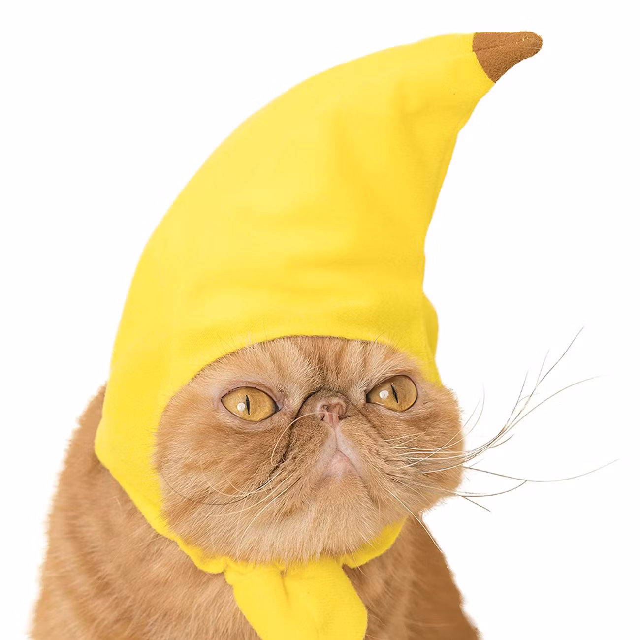 Om det är någonting vi vet med säkerhet så är det att katter älskar att klä ut sig, och valet faller 9 av 10 gånger på något inom kategorin frukt & grönt. Därför kan vi inte tänka oss att det blir annat än succé när du introducerar en knallgul bananhatt för din lilla pälskling!