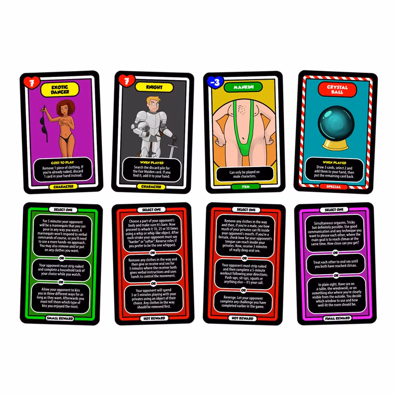 Använd stridskorten för att slåss om belöningskort som alla innehåller tre sexiga utmaningar var. Vinnaren av varje omgång får välja en av utmaningarna på kortet som sedan en, eller båda, spelarna måste utföra innan ni går vidare till nästa omgång.