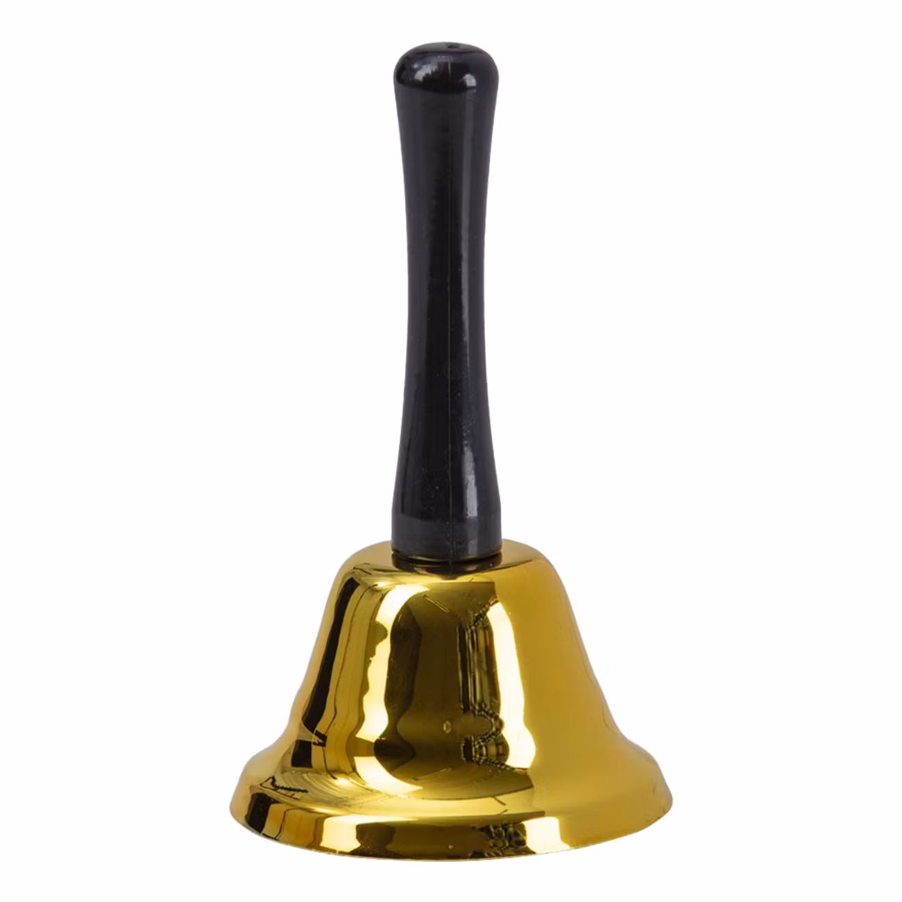Den här snygga handklockan passar perfekt att använda när du ska vara toastmaster på en stor middag eller en bröllopsfest. Du ringer helt enkelt i klockan när du vill påkalla gästernas uppmärksamhet. Du kan ju inte ha vilken klocka som helst då, eller hur? Nej, en härlig fest kräver en guldfärgad klocka. Kanske kan du också ge klockan till jultomten på julafton så att han kan ringa i den när han kommer för att dela ut alla sina julklappar.