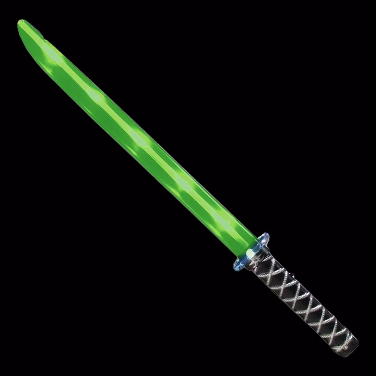 Blinkande Ninjasvärd innehåller ett svärd med nio blinkande och lysande LED-lampor. Ninjasvärdet lyser i grönt och har blinkande LED-lampor nertill som lyser i rött och blått.