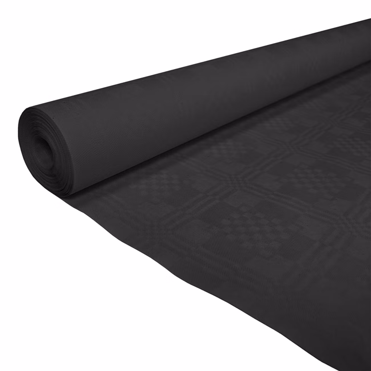 Bordsduk i Papp Svart är en slitstark duk tillverkad i papp. Duken är svart och levereras på en rulle.