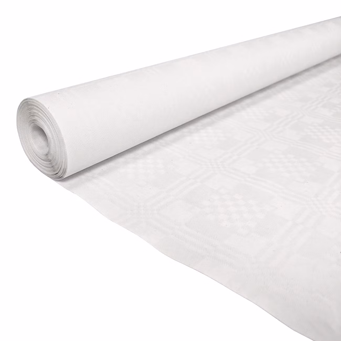 Bordsduk i Papp Vit är en vit slitstark duk tillverkad i papp. Duken levereras på en rulle.